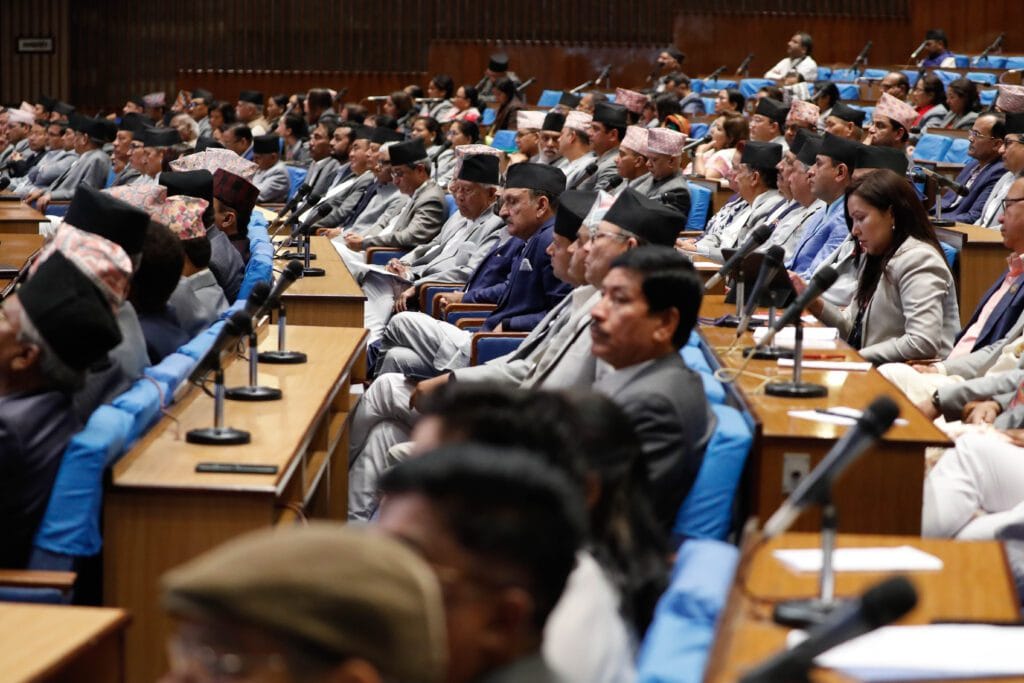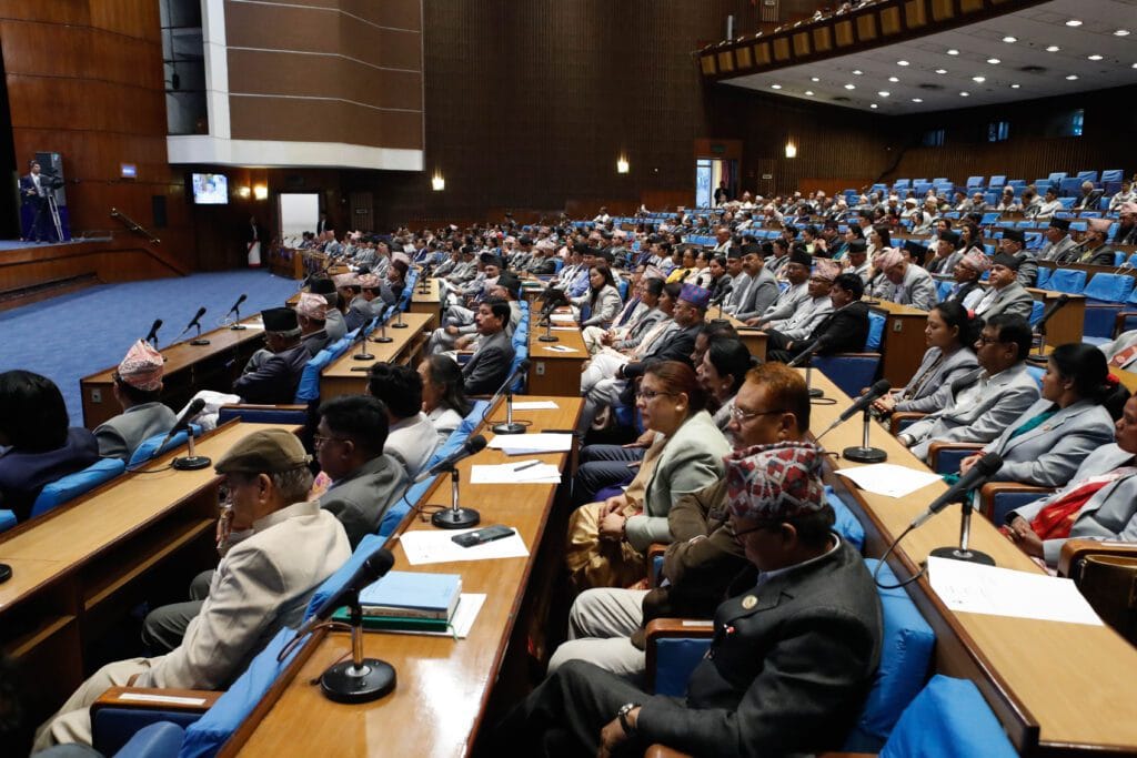 संघीय संसदको संयुक्त बैठकमा सरकारको नीति तथा कार्यक्रम प्रस्तुत गर्दै राष्ट्रपति रामचन्द्र पौडेल ।