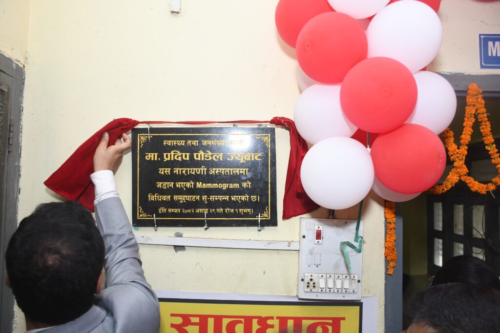 स्वास्थ्य तथा जनसंख्या मन्त्री प्रदीप पौडेलले क्यान्सरको उपचार सेवा प्रदेश तहमा विस्तार गर्ने प्रतिबद्धता जनाएअनुसार मधेश प्रदेशका महिलालक्षित स्तन क्यान्सर परीक्षणका लागि मेमोग्राम सेवा थालिएको हो ।