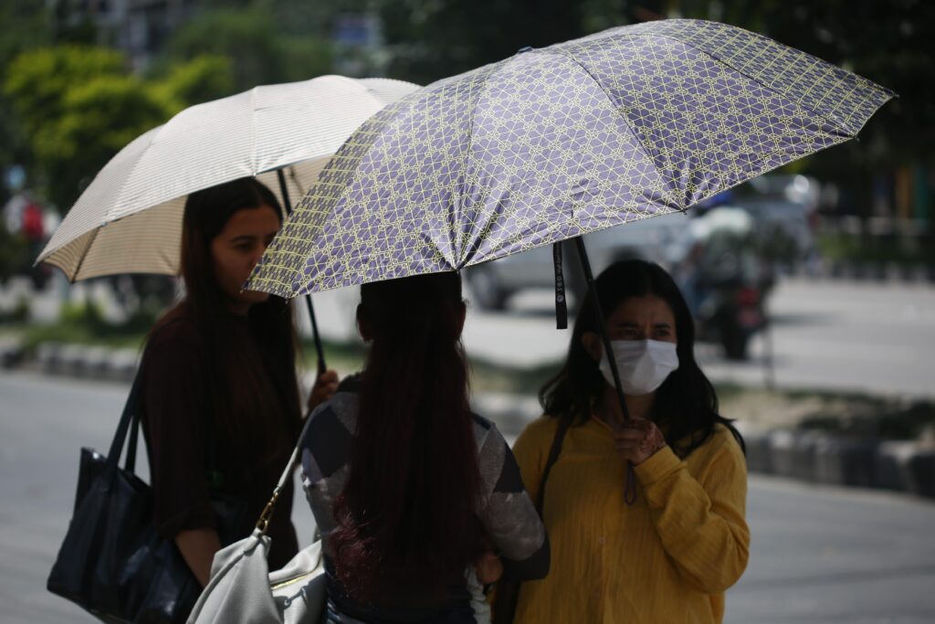 काठमाडौं । मनसुनको समयमा पनि पर्याप्त पानी नपर्दा काठमाडौं उपत्यकामा गर्मी महसुस भएको छ । मानिसहरु गर्मीबाट बच्न छाता ओढेर हिँडिरहेका अथवा शीतल तापिरहेका देखिन्छन् ।