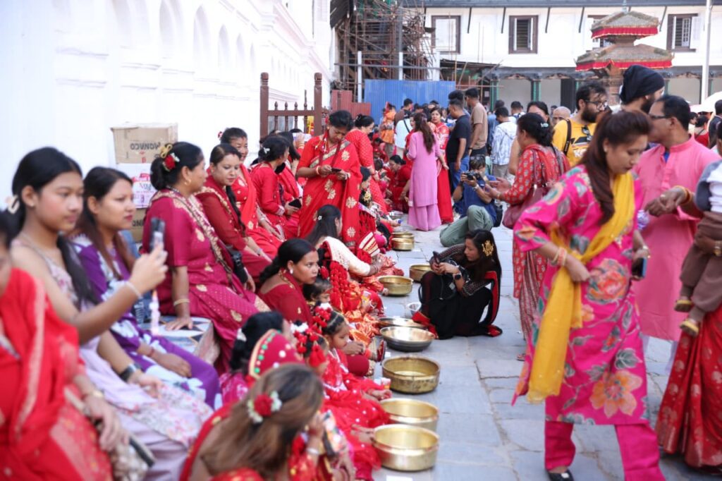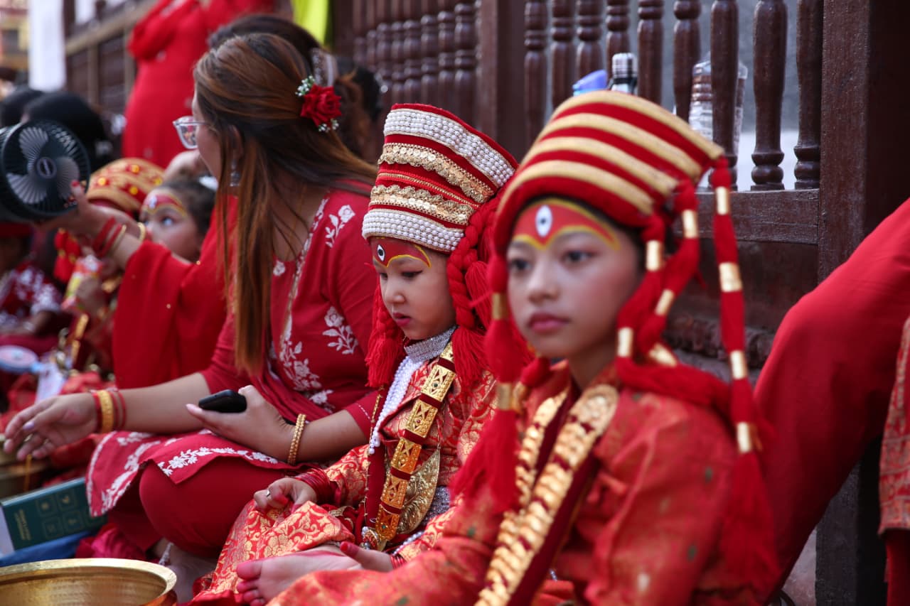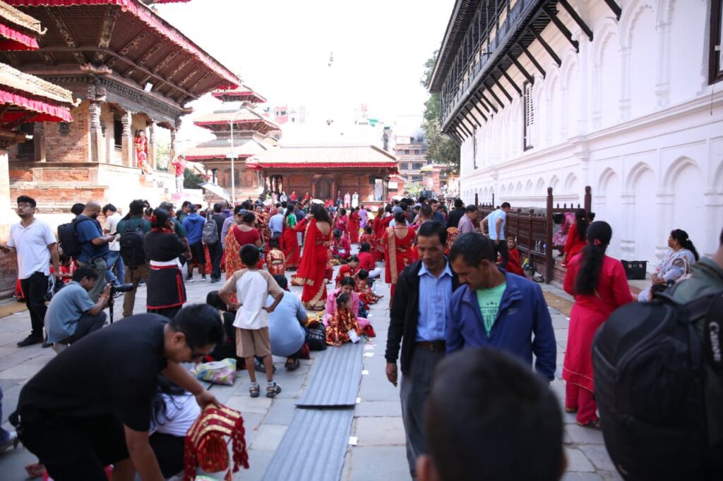 काठमाडौं । काठमाडौंको वसन्तपुर क्षेत्रमा रहेको तलेजु भवानी मन्दिर अगाडि आज कुमारीहरूको सामूहिक पूजा गरिएको छ।