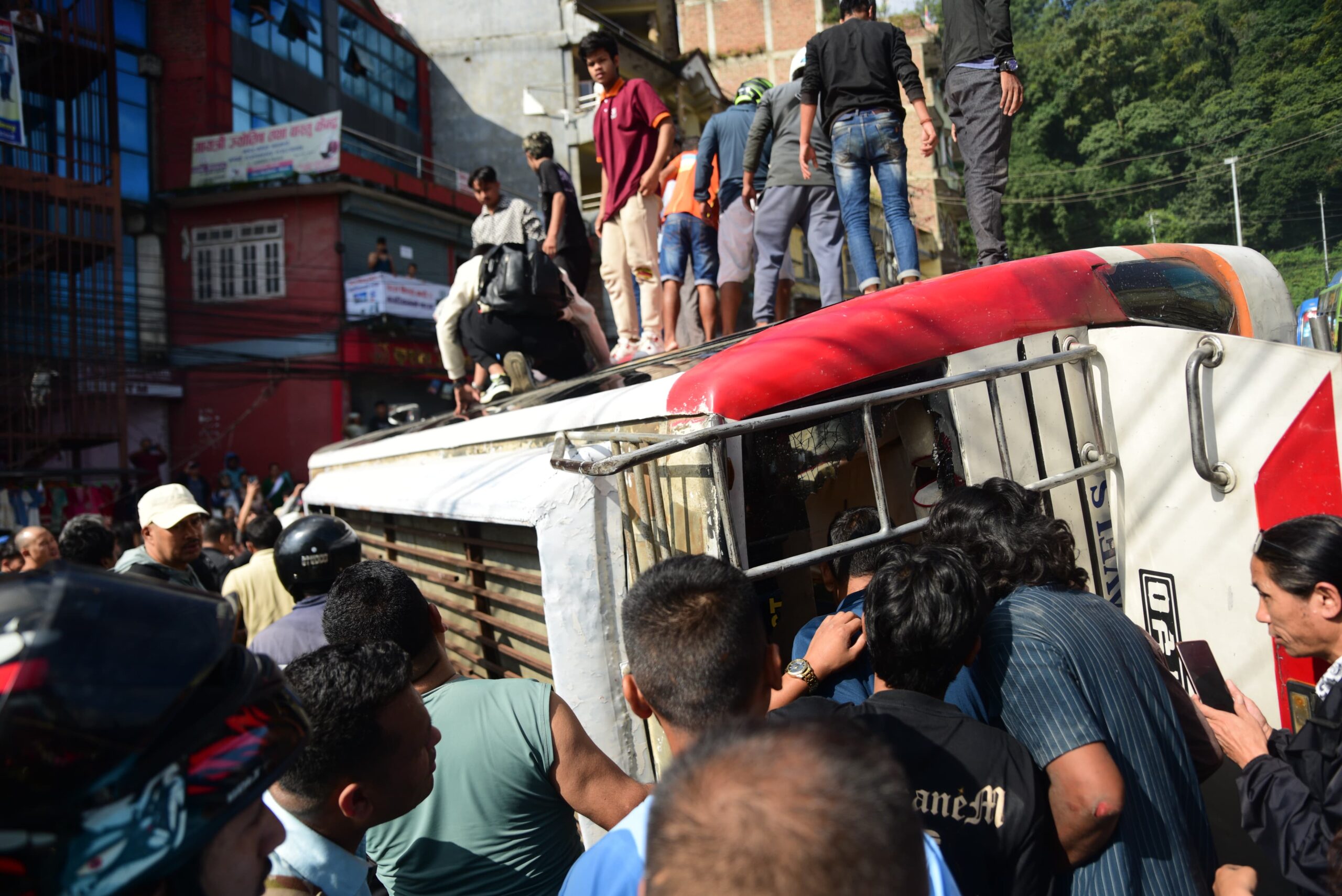 बा ५ ख ५० नम्बरको बस आज बिहान दुर्घटना परेको हो।