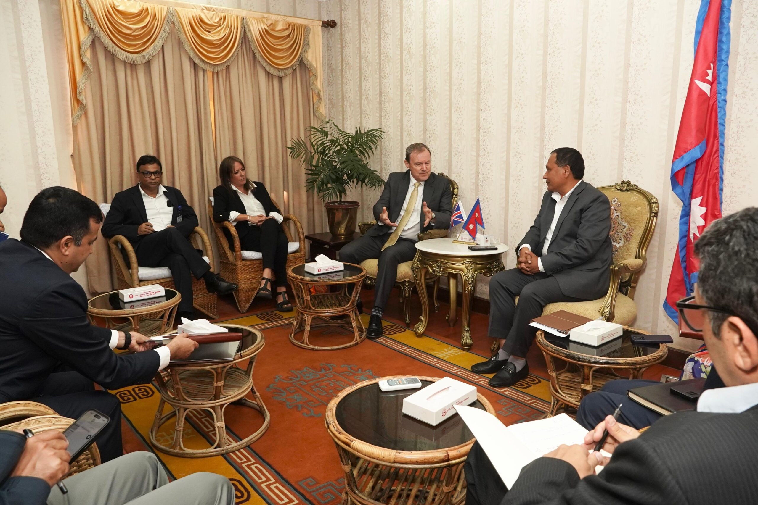 मन्त्री घिसिङ र बेलायती राजदुतको भेट, नेपालको आर्थिक रुपान्तरणमा सहयोग गर्ने
