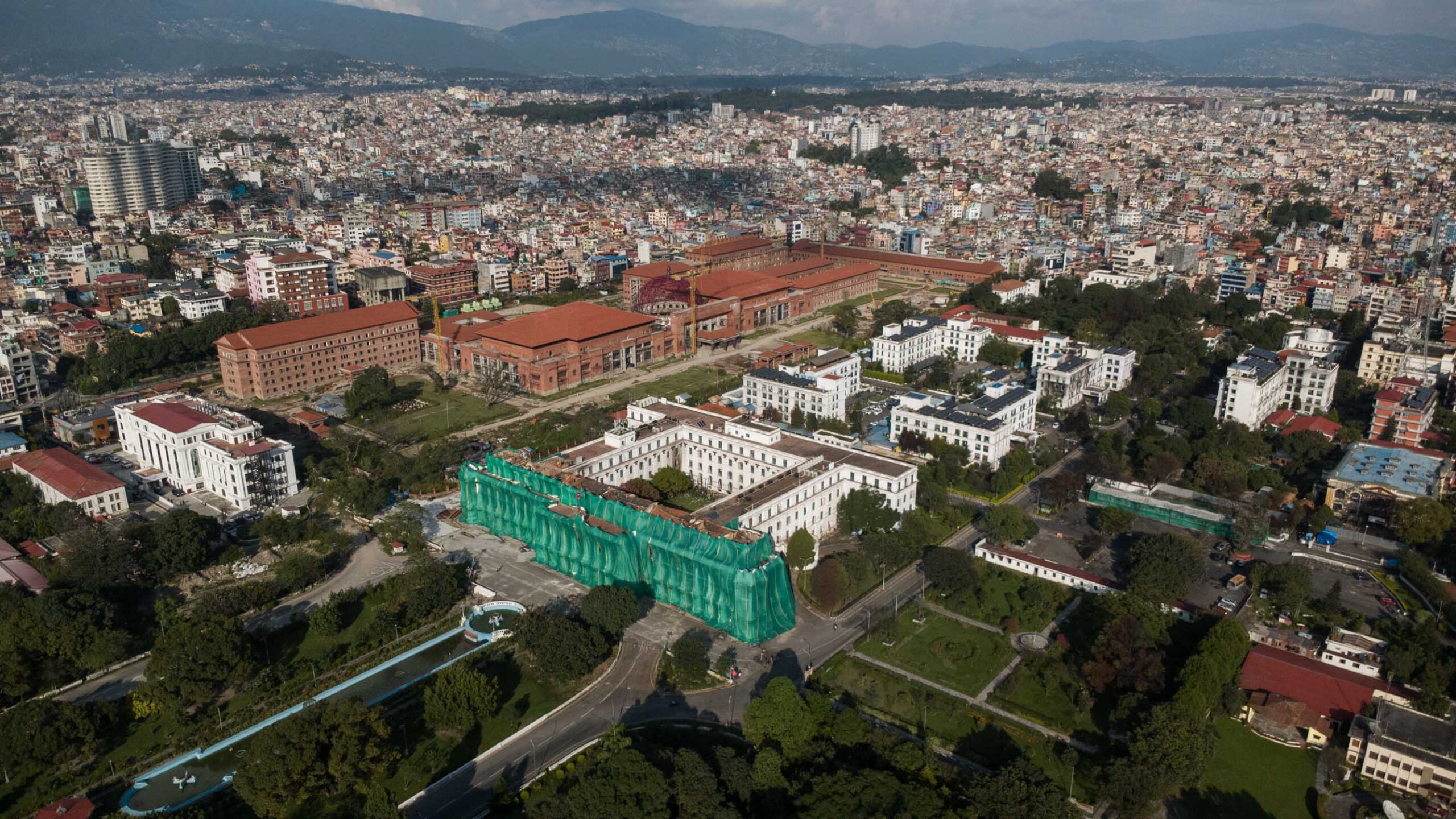 कतिपय भवन हरियो जालीले ढाकिएको छ । नक्सालस्थित भाटभटेनी पूर्ण रुपमा भत्केको छ । नक्सालकै पाँचतारे हिल्टन होटल हरियो जालीले छोपिएको छ । त्यहाँ कामदारहरु सरसफाइको काम गरिरहेका छन् ।