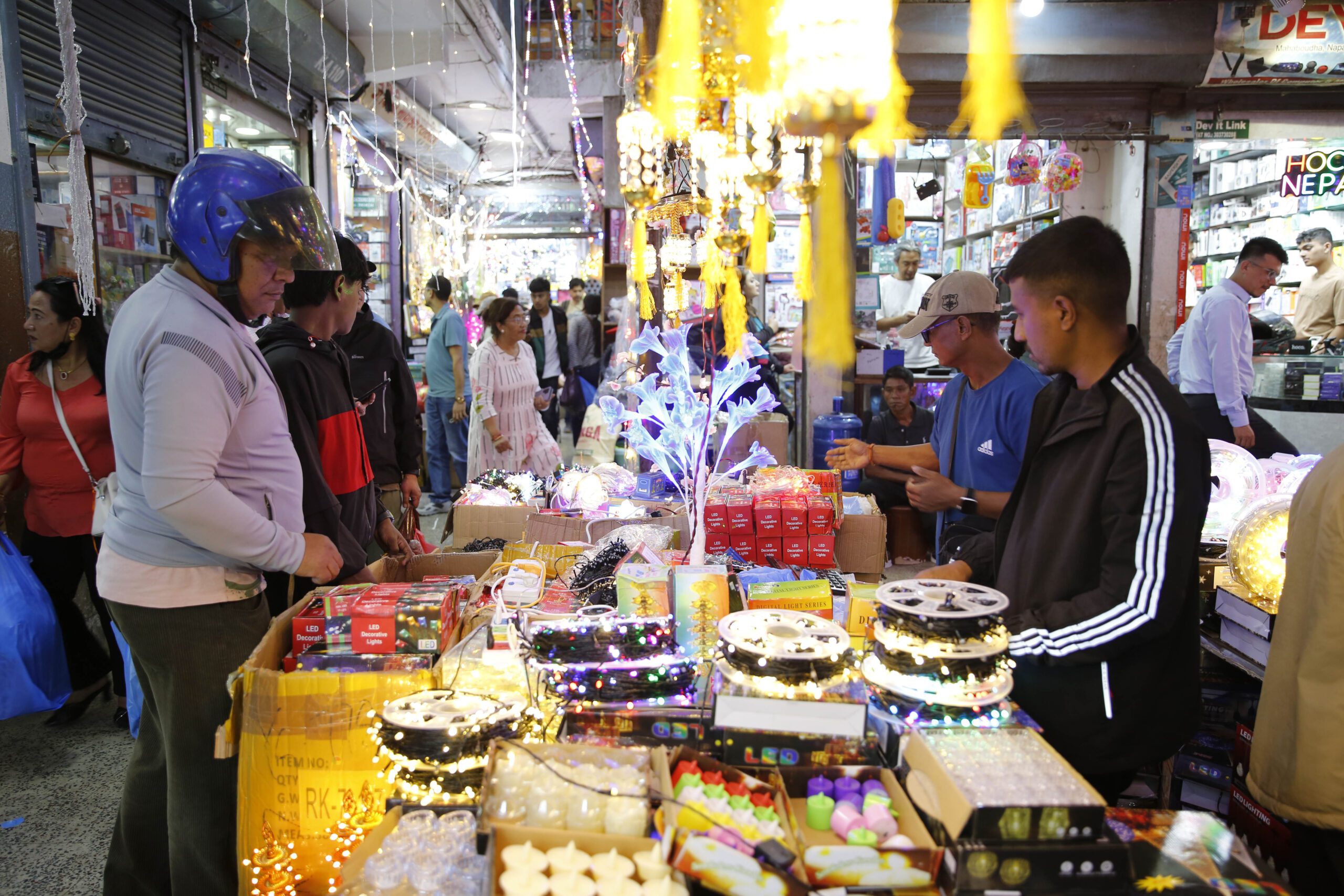 काठमाडौं । तिहार नजिकिएसँगै राजधानीको महाबौद्ध, बाङ्गेमूढा क्षेत्रमा झिलिमिली बत्तीहरू व्यापार सुरु भएको छ ।