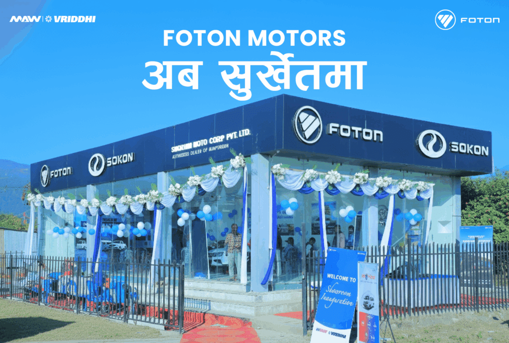 यस विस्तारसँगै, फोटोन मोटरको बिक्री नेटवर्क अहिले देशभर १५ स्थानसम्म फैलिएको छ, जसले सुर्खेत र आसपासका क्षेत्रका ग्राहकहरूलाई अझ सहज पहुँच र सेवा सुनिश्चित गर्दछ। साथै, फोटोन टोटल केयर सर्भिस नेटवर्क पनि नेपालभर १७ सेवा केन्द्रहरूमा विस्तार भएको छ, जसले ग्राहकहरूलाई सुविधासम्पन्न आफ्टर सेल्स सर्भिस, मर्मतसम्भार समाधान र ब्रान्डको भरपर्दोपनको प्रतिवद्धता प्रदान गरेको छ ।
