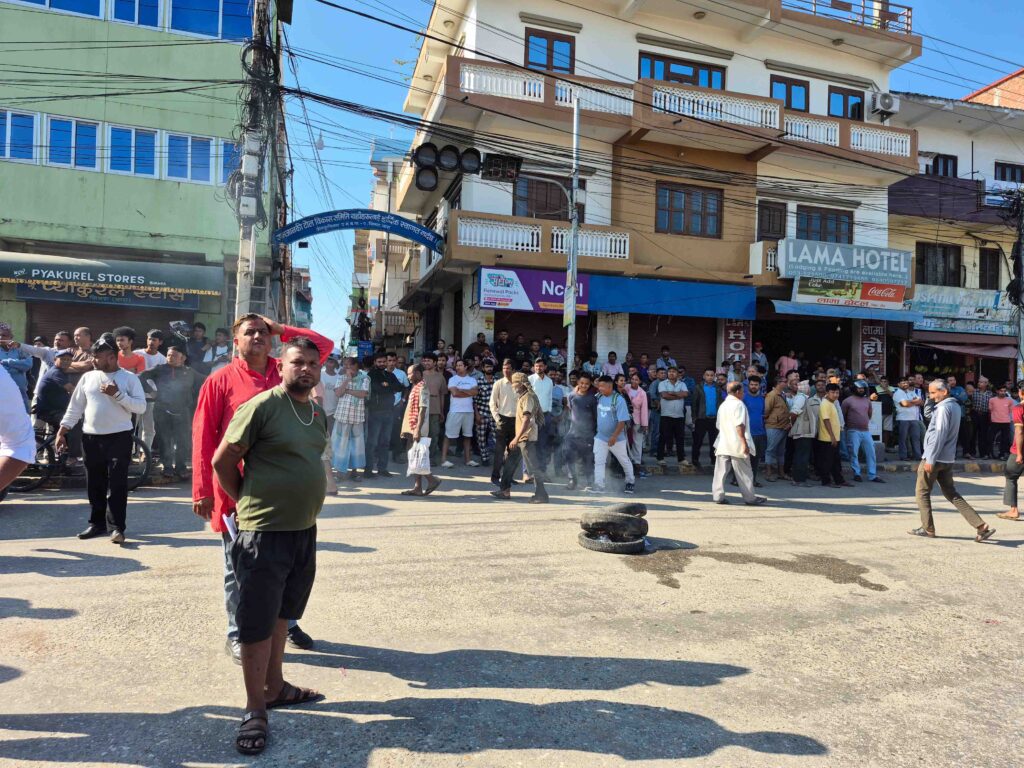 प्रदर्शनमा उत्रिएका जेनजी समूहले सडकमा टायर बालेका छन् । प्रदर्शनकारी र एमाले कार्यकर्ताबीच झडप हुँदा यस क्षेत्रको अवस्था तनावग्रस्त बनेको छ ।