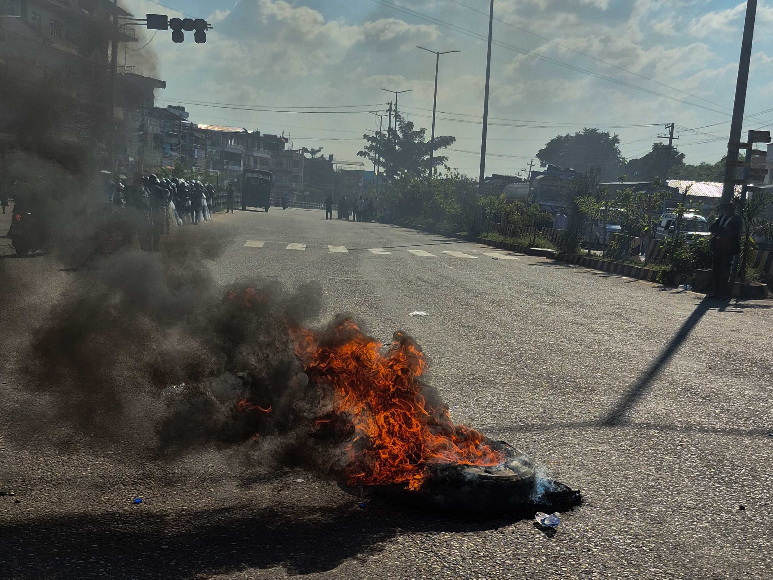 जेनजी प्रदर्शनकारीले सिमरा विमानस्थल छिर्ने बाटो अगाडि टायर बालेर प्रदर्शन जारी राखेका छन् । प्रहरीले प्रदर्शन नगर्न र सार्वजनिक सडक खाली पार्न प्रदर्शनकारीलाई चेतावनी दिएको छ । यद्यपि, सडकमा प्रदर्शन जारी छ ।तस्बिरहरु: श्याम ठकुरी/नेपाल फोटो लाइब्रेरी