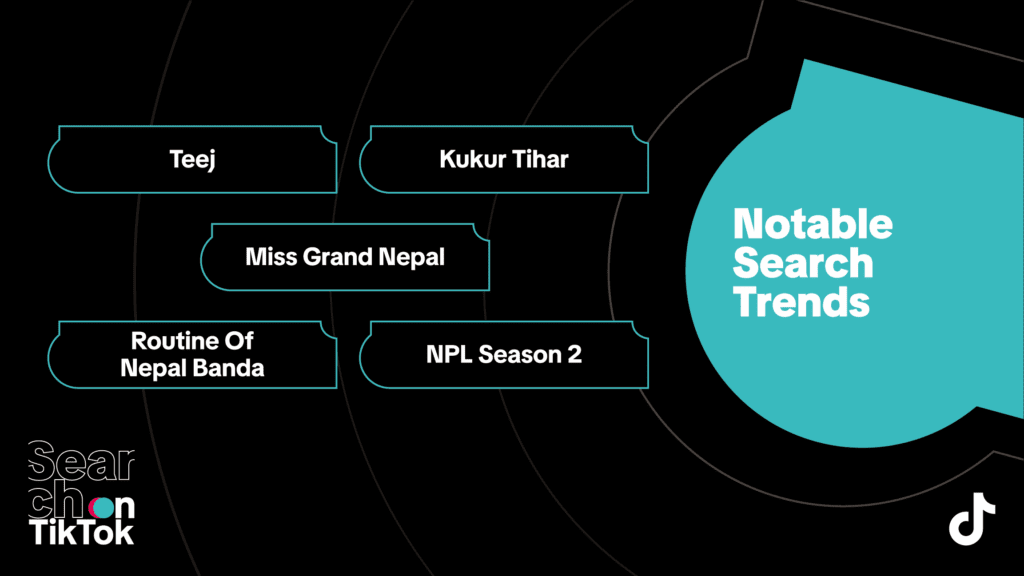 यस वर्षका सर्चहरूले उद्देश्य सहितका खोजको कथा भनिरहेका छन्। यात्राका लागि महत्त्वपूर्ण गन्तव्यहरूमा देखिएको चासोले टिकटकले गन्तव्य खोज्न, घुमफिरको योजना बनाउन र नयाँ अनुभवहरू पत्ता लगाउन भूमिका खेलिरहेको देखाउँछ। यो सूचीले लोकप्रिय सेलिब्रिटी र ड्रामादेखि लिएर दैनिक कुराकानीलाई प्रभाव पार्ने गीत र भाइरल क्षणहरूसम्म, समग्रमा नेपाली संस्कृतिको ढुकढुकी नै समेटेको छ।