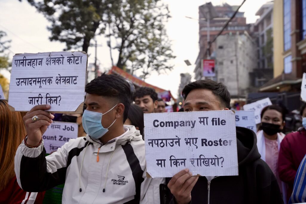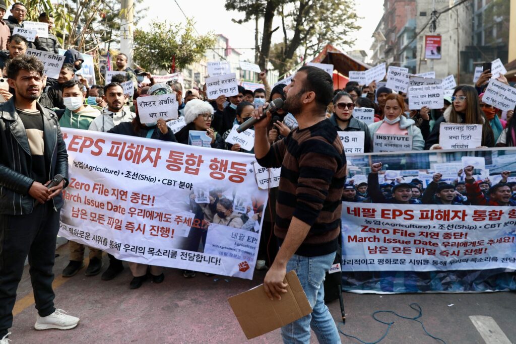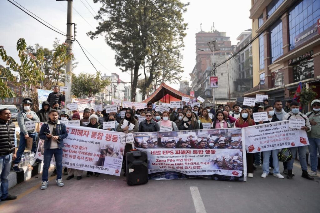 काठमाडौं । २ वर्षअघि ईपीएसमार्फत कोरियन भाषा परीक्षा पास गरेर रोस्टरमा रहेका युवाले आज काठमाडौं माइतिघरमा विरोध प्रदर्शन गरेका छन्। भाषा र सीप परीक्षण उत्तीर्ण गरेर पनि कोरिया जान नपाएपछि उनीहरू विगत ७ महिना देखी आन्दोलनमा छन् ।तस्बिरहरु: नेपाल फोटो लाइब्रेरी