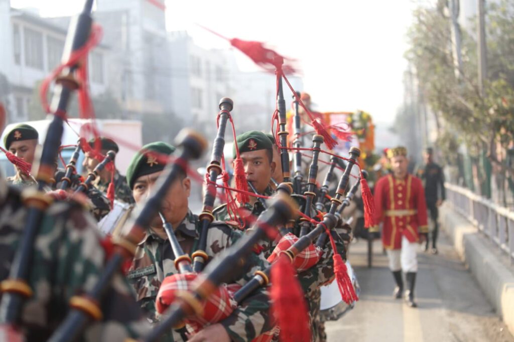 आज को दिन शान्तिवाटिकामा भेला भएर नेपाल प्रहरी र सशस्त्र प्रहरीको ब्यान्ड, मार्चपास र शहीदको तस्वीर राखिएको बग्गीसहितको प्रभातफेरी शहीद उद्यान लैनचौरमा पुगेर श्रद्धाञ्जलीसभामा परिणत भएको थियो ।