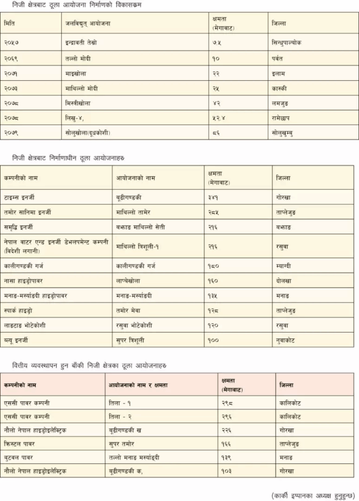 माथिका समस्यासँग जुध्दै, संघर्ष गर्दै, सुधारका लागि सरकारसँग बहस, पैरवी र हातेमालो गर्दै निजी क्षेत्र विद्युत् आयोजना निर्माणमा अग्रसर भएको छ । अहिले पनि ५७ सय मेगावाट निजी क्षेत्रको नेतृत्वमा निर्माणाधीन छ भने पीपीए भएर वित्तीय व्यवस्थानका लागि २२ सय मेगावाट क्षमताका आयोजना क्रियाशील छन् ।