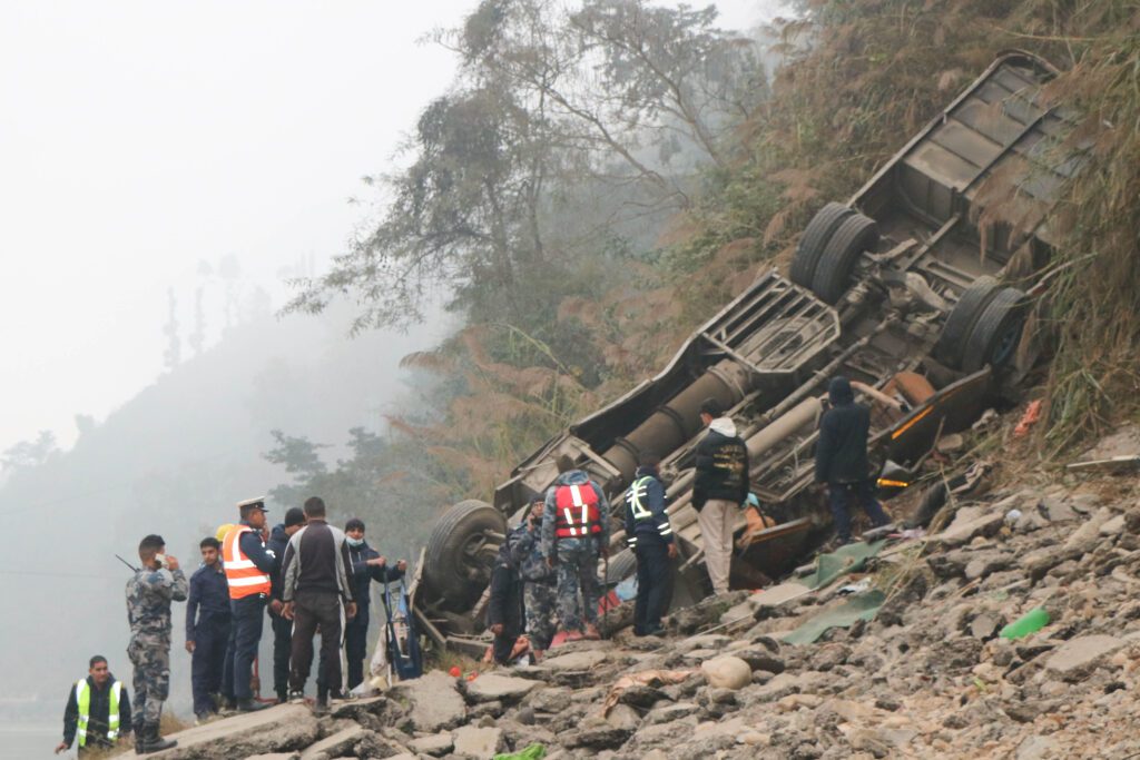 काठमाडौ । धादिङ बस दुर्घटना, तस्बिर घटना स्थल देखि राष्ट्रिय ट्रमा सेन्टर सम्म । तस्बिर : नेपाल फोटो लाइब्रेरी