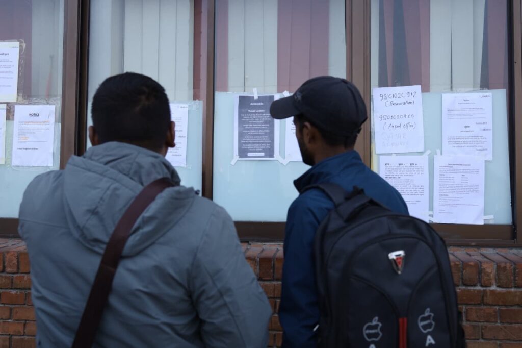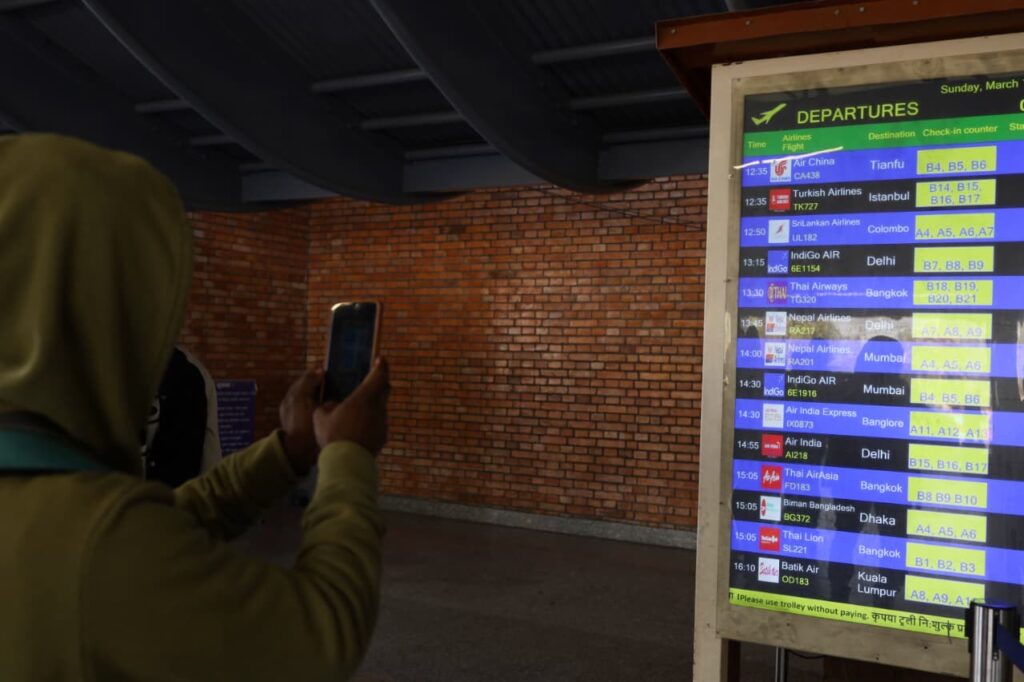 उडान रद्दका कारण यात्रुहरु शनिबारदेखि नै अलपत्र परेका छन् । आइतबार बिहान पनि यात्रुहरु अन्योलमा यताउता गरिरहेका देखिन्थे । विमानस्थलमा अनेक सूचना टाँसिएका छन् । तस्बिरहरु: नेपाल फोटो लाइब्रेरी