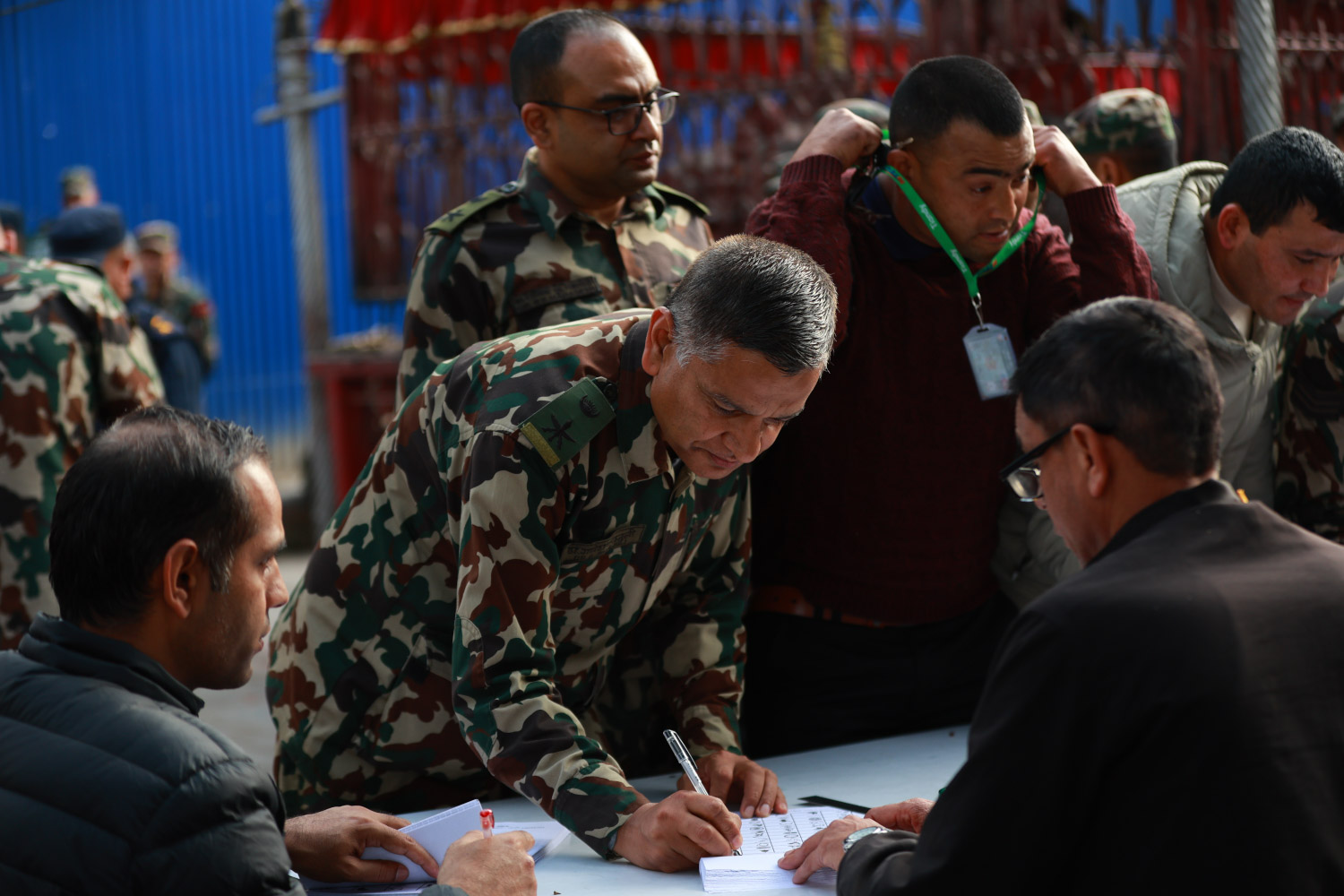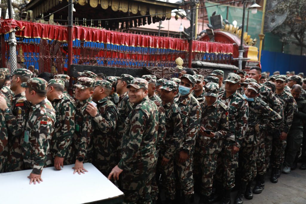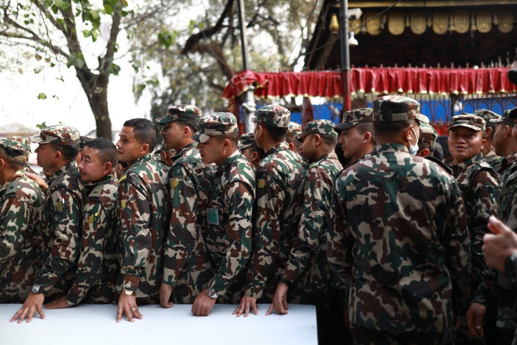 काठमाडौं । कर्मचारी तथा सुरक्षाकर्मीहरूले समानुपातिकतर्फ मतदान गर्न पाउने व्यवस्था हुँदा मतदाता नामावलीमा नाम हुने सैनिकहरूले काठमाडौँको भद्रकालीस्थित अस्थायी मतदान केन्द्रबाट मतदान गरिरहेका छन्।