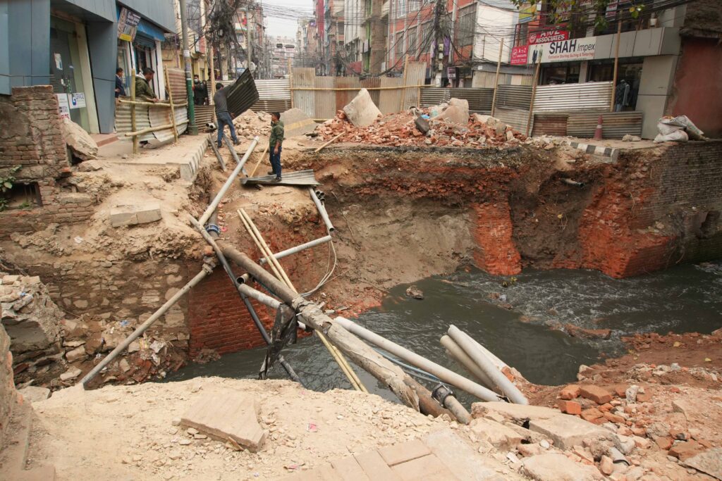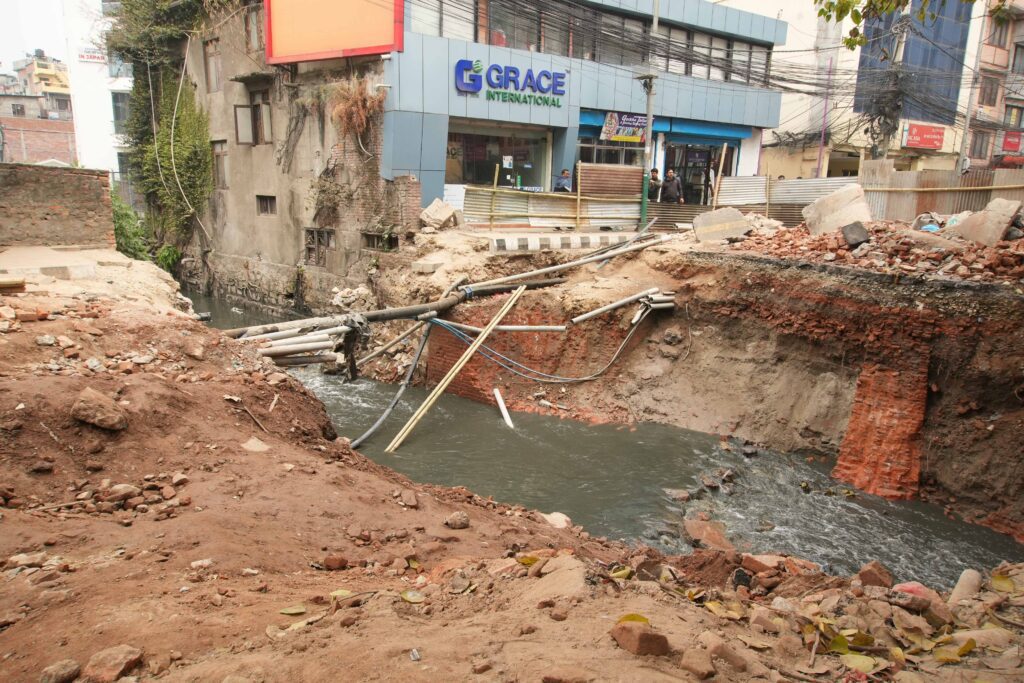 बागबजारस्थित टुकुचामा काठमाडौं महानगरपालिकाले थाल्यो सिंगल सेल बक्स कल्भट निर्माण