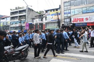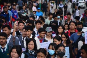 पोखरामा जेनजीको प्रदर्शनमा विद्यालय पोशाकमै विद्यार्थी सहभागी