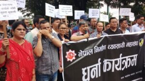 बिलकाे भुक्तानी नगरेको र म्याद थपसम्बन्धी निर्णयको विरोधमा निर्माण व्यवसायीको धर्ना (फाेटाेफिचर)
