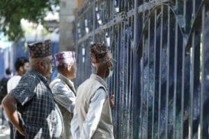 न्युरोडस्थित अभिमत बचत तथा ऋण सहकारी संस्था लिमिटेडको भवन अगाडि बचतकर्ता पीडितहरुको खबरदारी