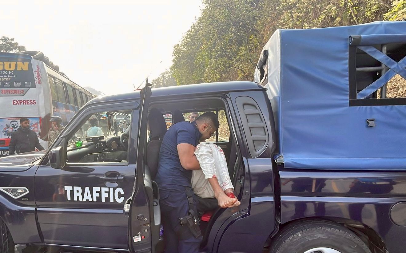 चितवनको दासढुंगामा रोकिराखेको तेल ट्यांकरमा बस ठोक्किँदा १३ जना घाइते