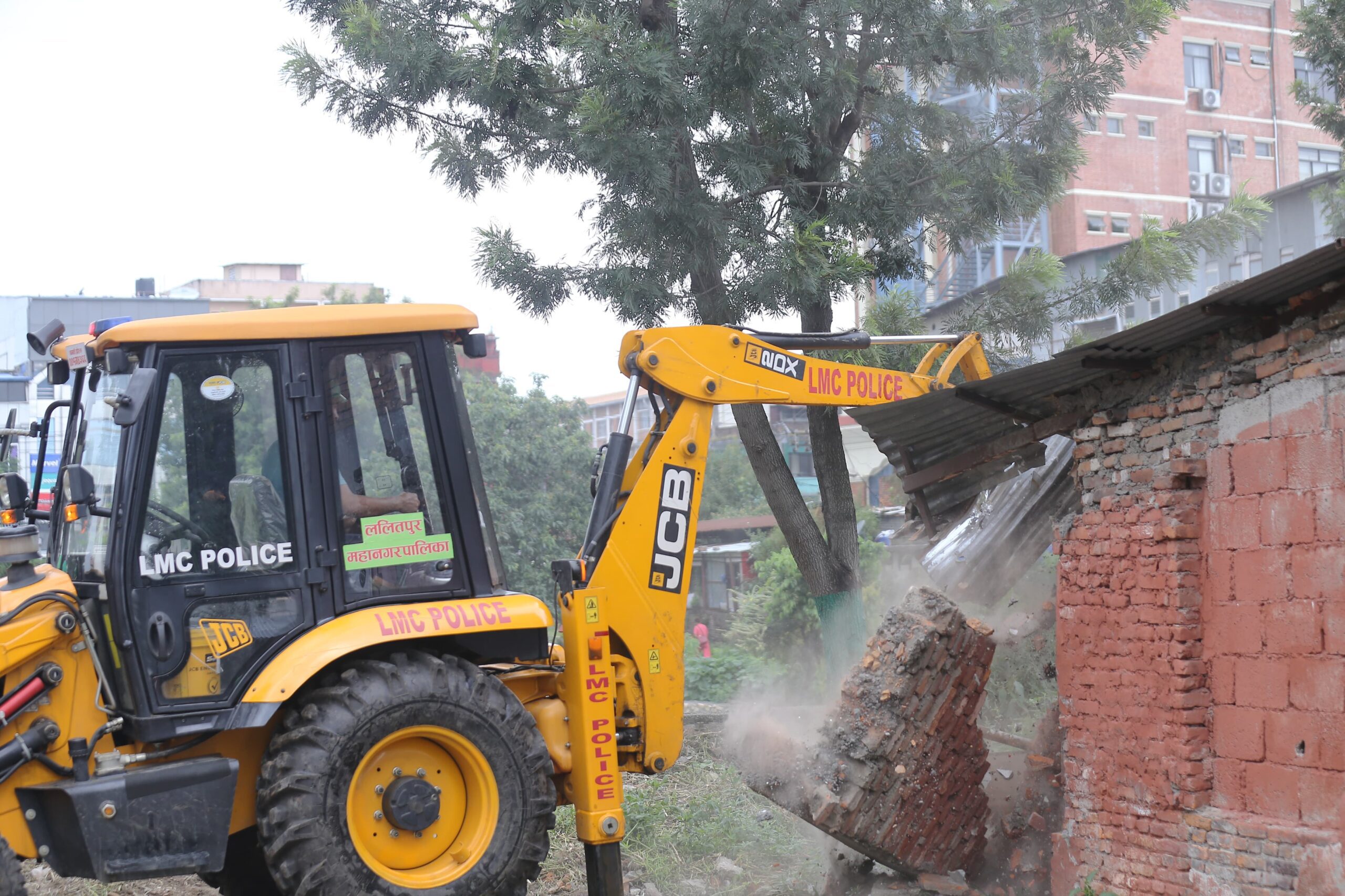 ललितपुर महानगरपालिकाले लगनखेल क्षेत्रमा सार्वजनिक जग्गा अतिक्रमण गरी निर्माण गरिएको संरचना भत्काउदै