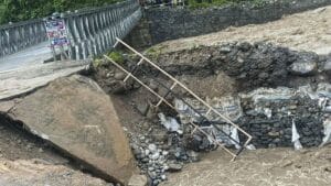 काभ्रेपलाञ्चोक जिल्लाको बनेपा नगरपालिका ४ र १ को सीमामा रहेको पुल भाँचिएपछि यातायात पूर्ण रूपमा अवरुद्ध