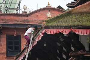 वसन्तपुरमा इन्द्रजात्राको तयारी: मन्दिरको झार हटाइँदै