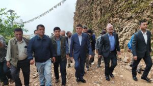 बाढीले ध्वस्त पारेको रसुवागढीको सडक हेर्न फिल्डमै पुगे मन्त्री दाहाल, निर्माण कार्य तिव्र पार्न निर्देशन