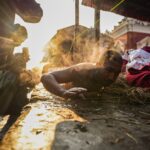 पनौतीस्थित त्रिवेणी नदिमा स्नान माधवनारायण स्वस्थानीको ब्रत बसेका ब्रतालुहरू